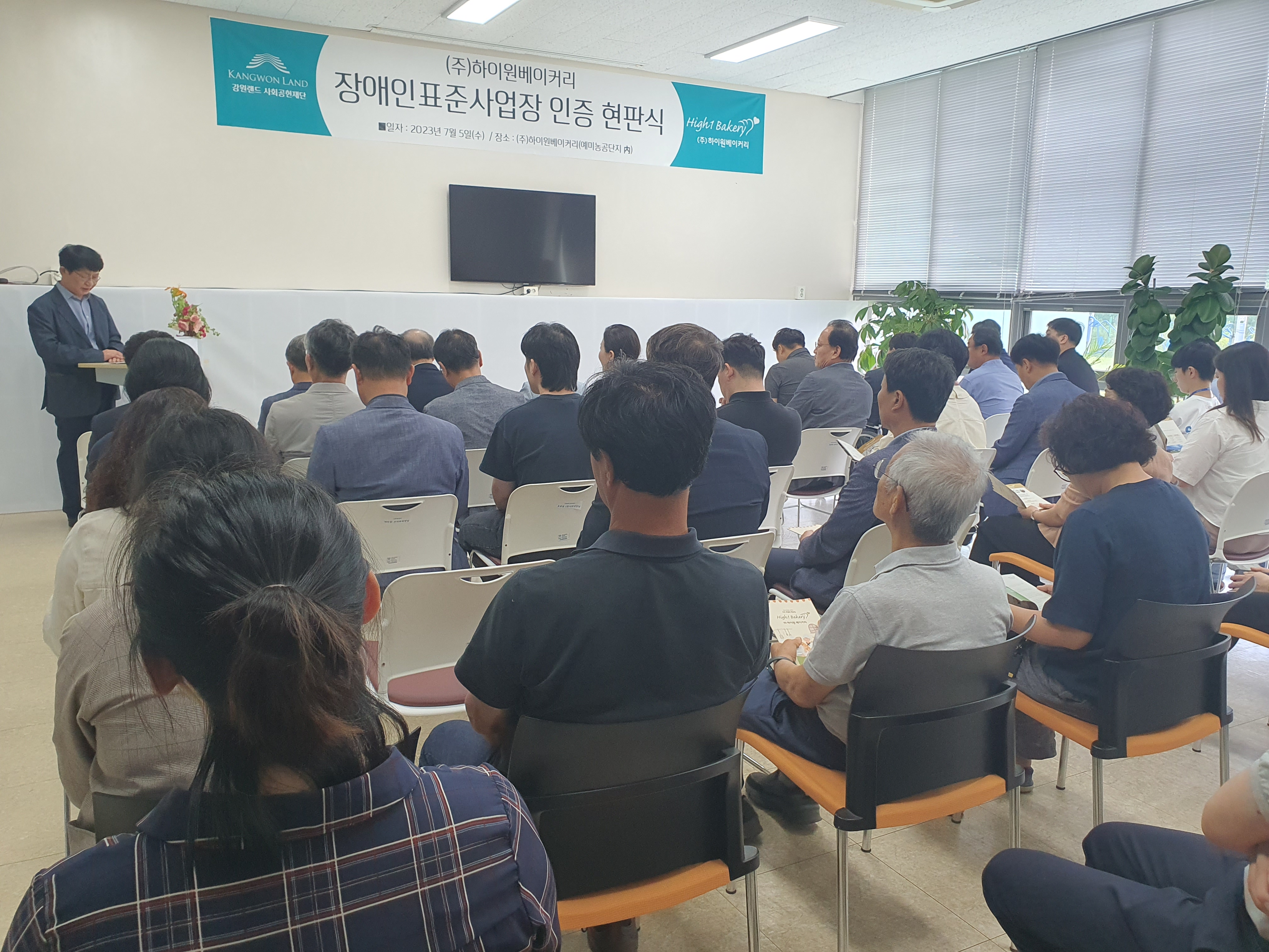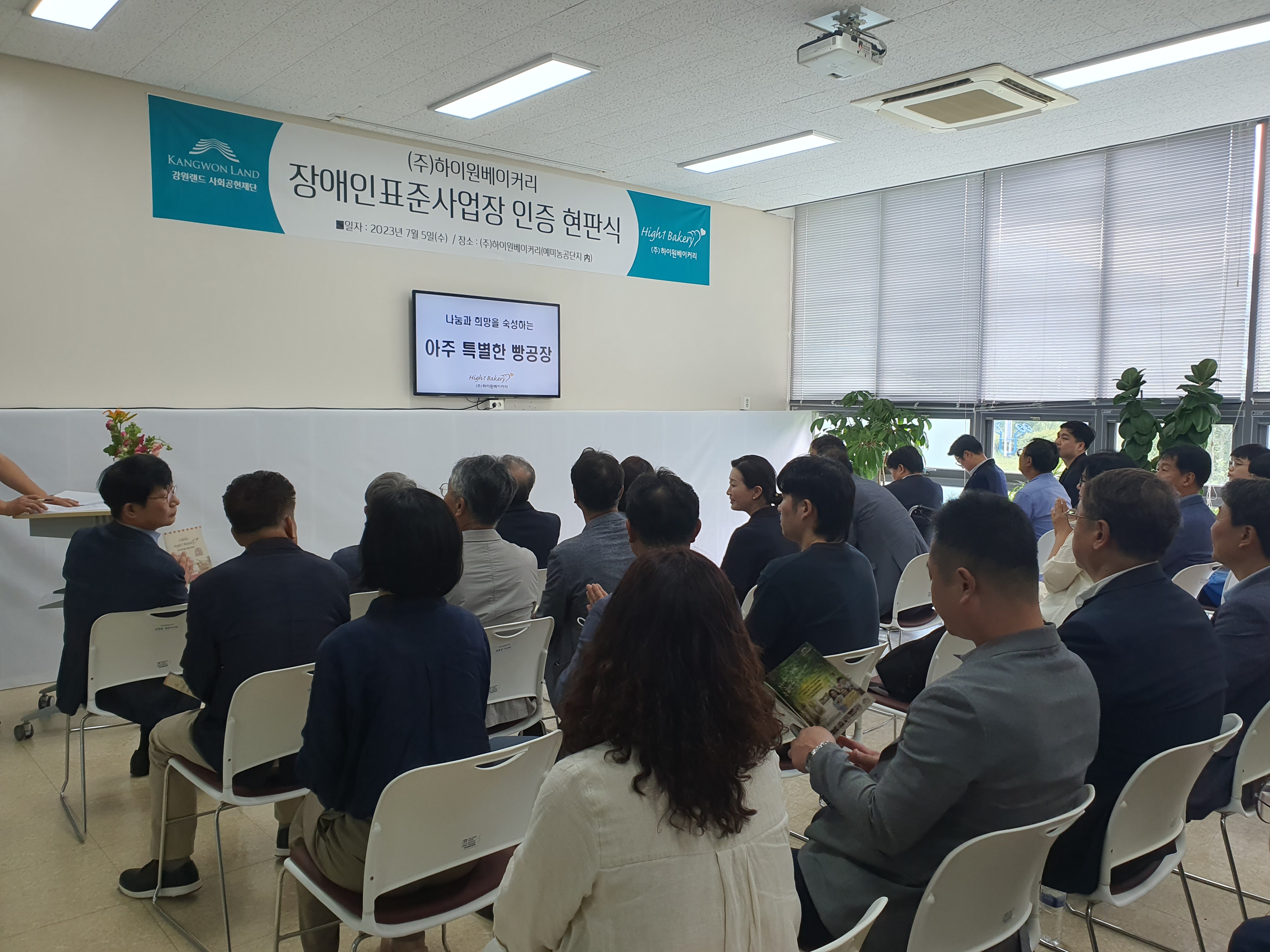 저희는 2023년 2월 5일, 정선군 신동읍 예미농공단지에 위치한 하이원베이커리 공장에서 ‘장애인 표준사업장’ 인증 현판식을 진행했습니다.