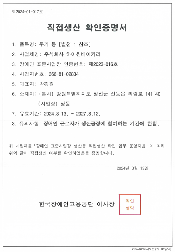 직접생산 확인증명서