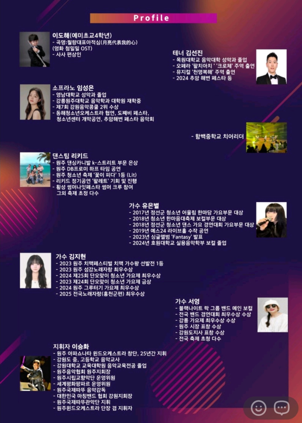 또한 함백중·고등학교 치어리딩팀과 리키드 댄싱팀의 특별출연, 영화 타이타닉 주제가 ‘My Heart Will Go On’ 등 대중적인 무대가 더해져 공연의 즐거움은 한층 풍성해졌습니다.