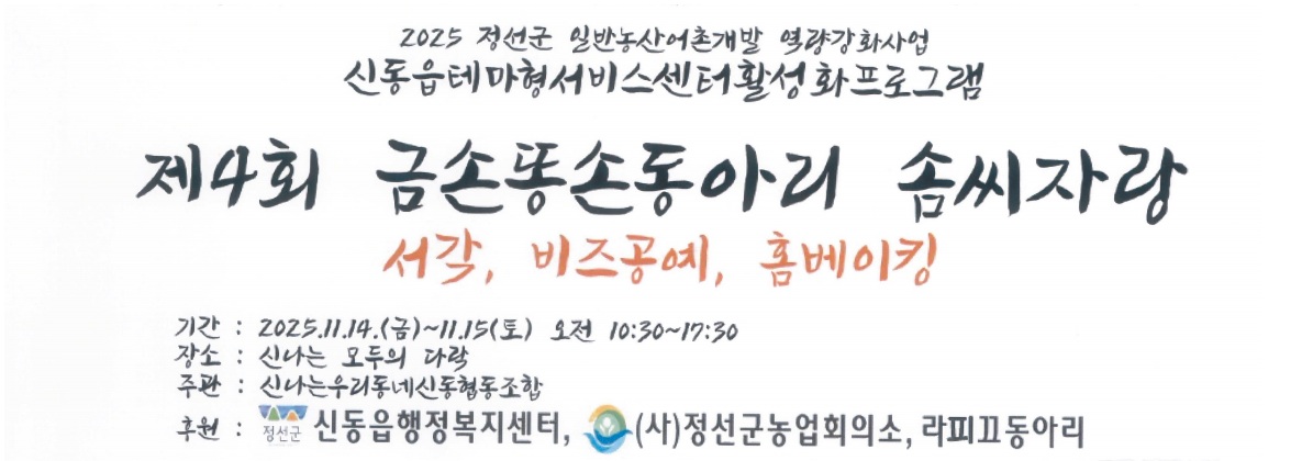 2025년 정선군 일반농산어촌개발 역량강화사업의 일환으로 진행된 문화교양강좌는 일반농산어촌개발사업 완료지구 활성화 프로그램의 하나로 마련되었으며, 주민들의 활력 증진과 지역공동체 활성화를 위해 하이원베이커리에서 뜻깊게 운영되었습니다.